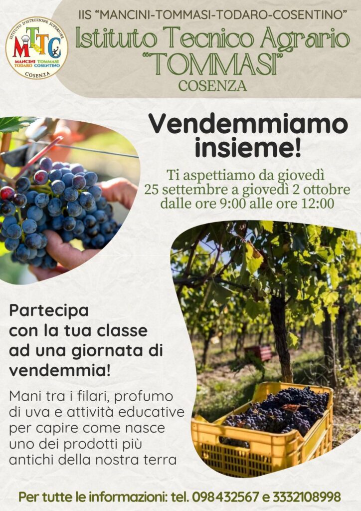 L'Istituto Tecnico Agrario "Tommasi" invita te e la tua classe a partecipare ad una giornata di vendemmia. Ti aspettiamo!